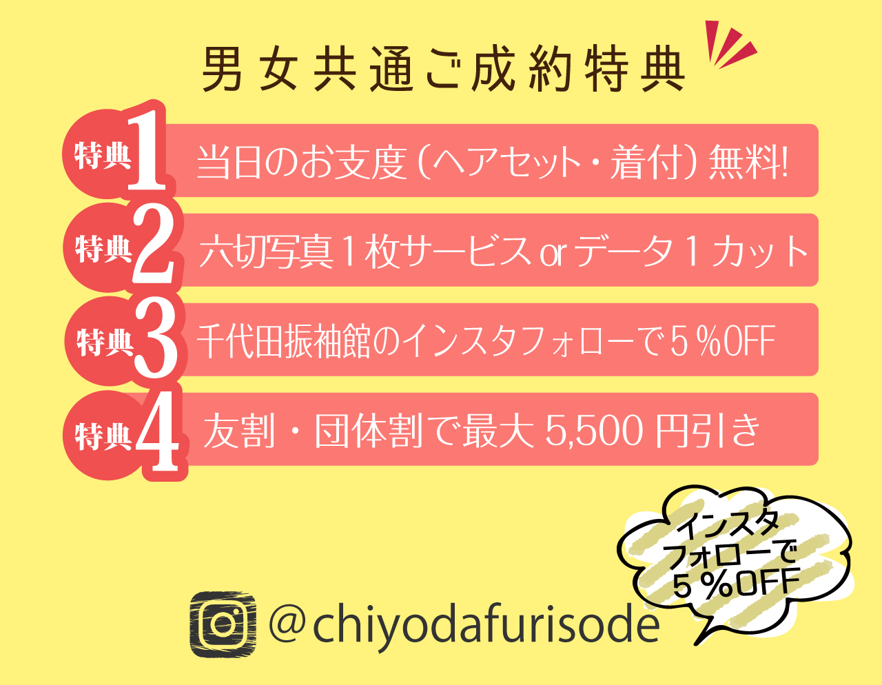 卒業袴ご成約で下記の特典もついてるよ💖